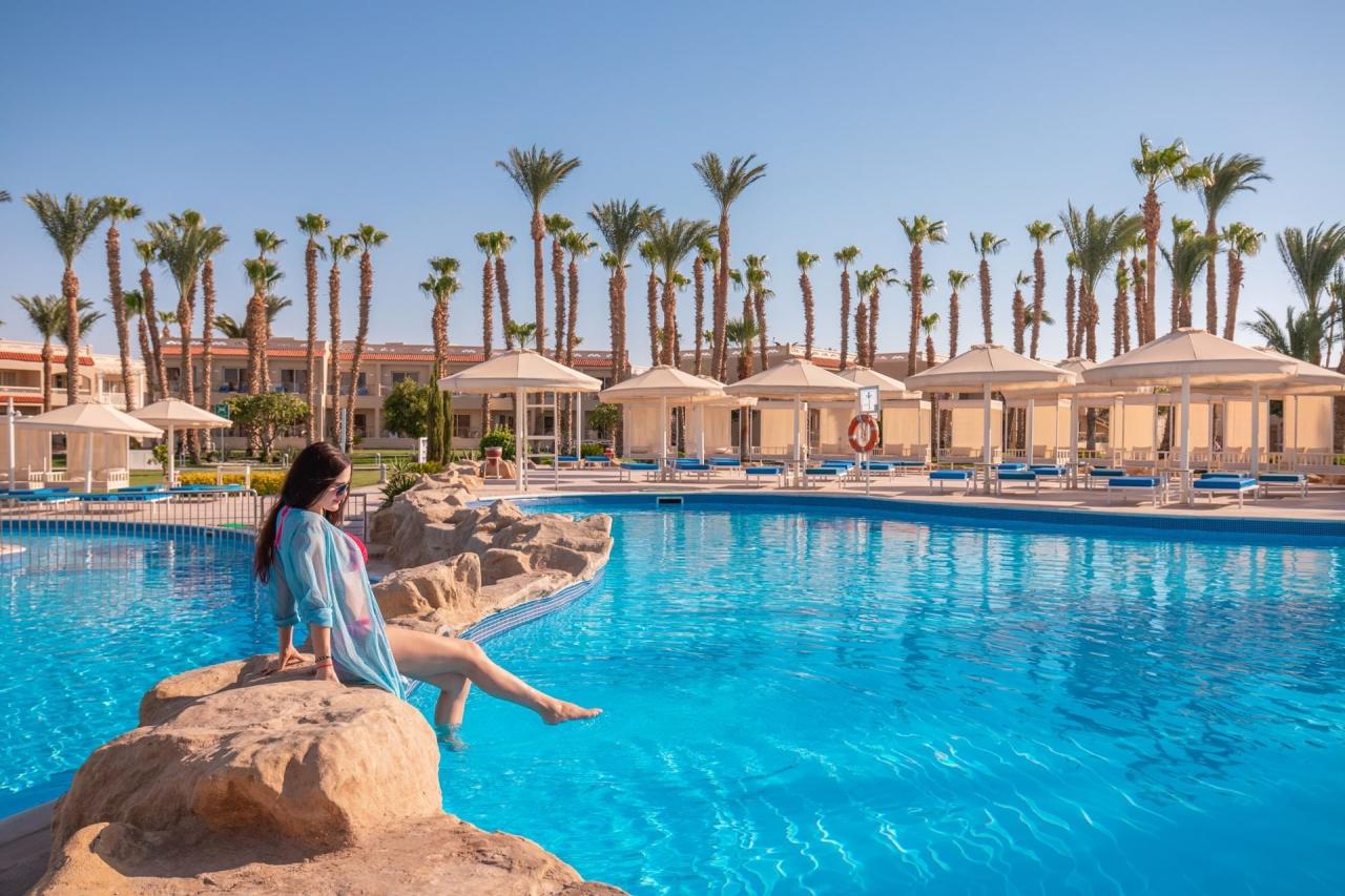 A hotel Hurghada repülőterétől kb. 10 km-re, a város központjától pedig kb. 20 perces autóútra fekszik, közvetlenül a saját, homokos tengerpartján.