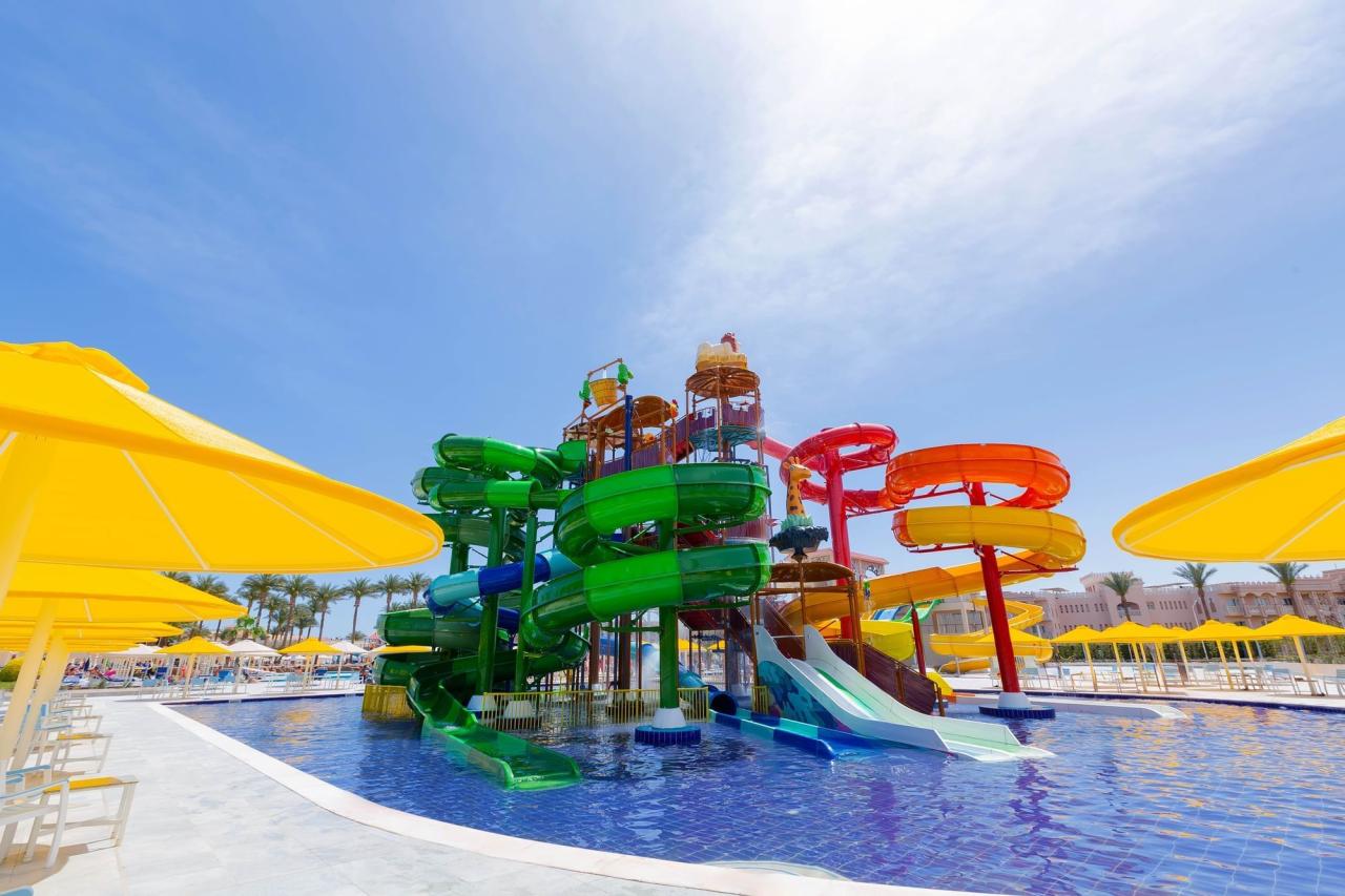 11 kültéri úszómedence, melyek egy része fűtött, 2 vízi csúszda felnőtteknek és 6 gyerekeknek, egy kültéri pezsgőfürdő (felnőtteknek), röplabdapálya, spa-szolgáltatások, teniszpálya, minigolfpálya, biliárd, darts és játékterem áll rendelkezésre. A parton búvárközpont, sznorkel és kajakozás; esténként karaoke és diszkó várja az érdeklődőket. Bizonyos szolgáltatások felár ellenében vehetők igénybe.
