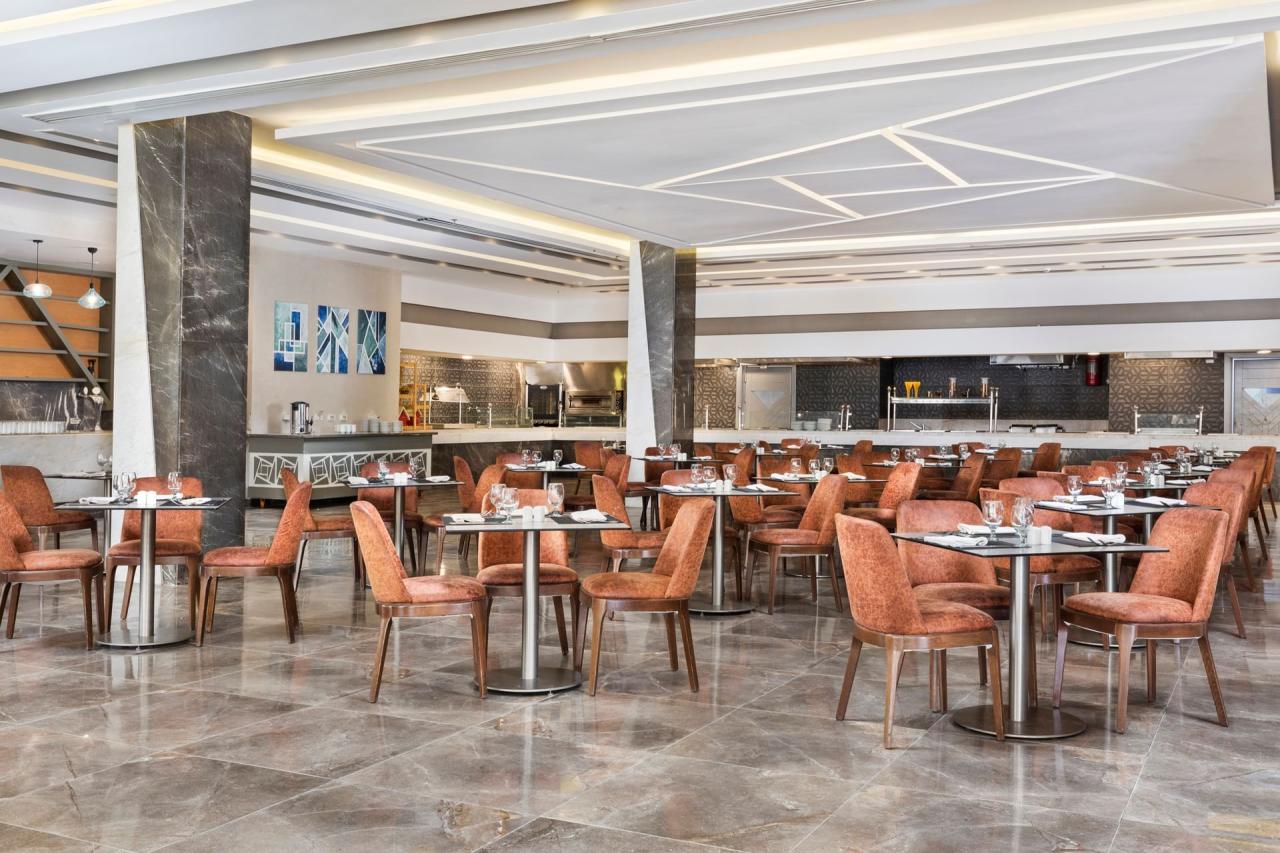 A szálloda all inclusive ellátással foglalható, 9 bárral és egy ázsiai, német, mediterrán, és marokkói témájú étteremmel várja vendégeit.