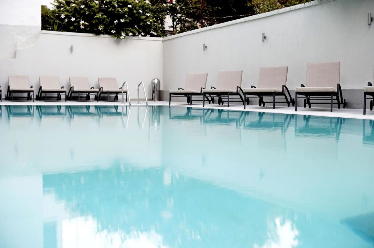 A vendégek kikapcsolódását a szálloda kertjében található kültéri medence segíti.