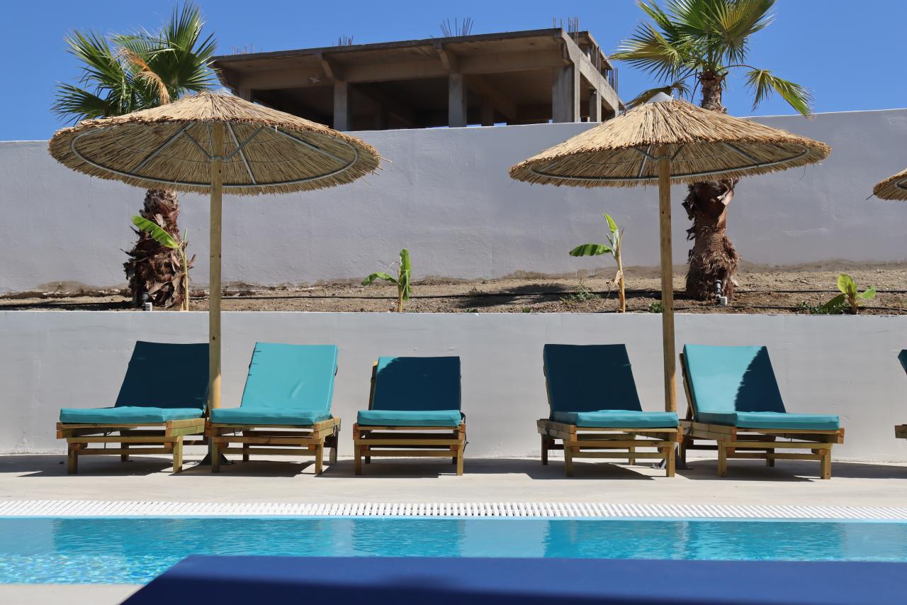 A napernyők és napágyak a medencénél ingyenesek, azonban a tengerparton térítés ellenében használhatóak.