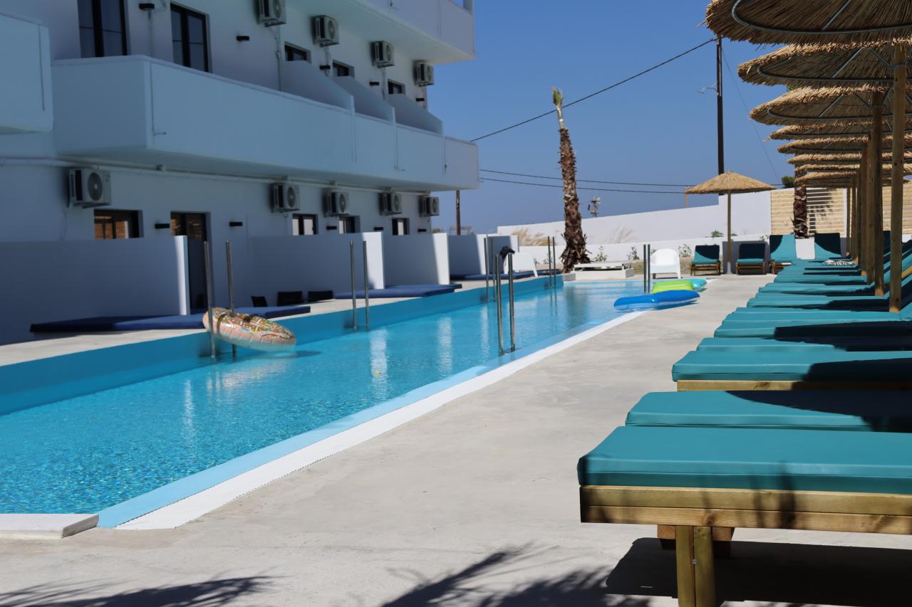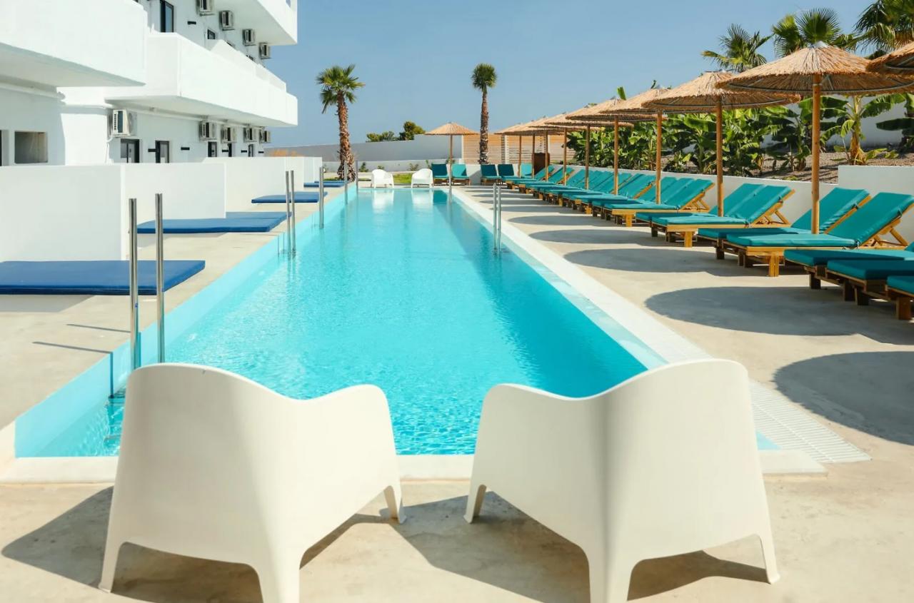 A háromcsillagos családias hotel csendes környezetben, Faliraki városában helyezkedik el, kb. 1,2 km-re a homokos tengerparttól, kb. 13 km-re Rodosz városától és kb. 17 km-re a repülőtértől. Faliraki központja kb. 10 perces sétával könnyen elérhető.