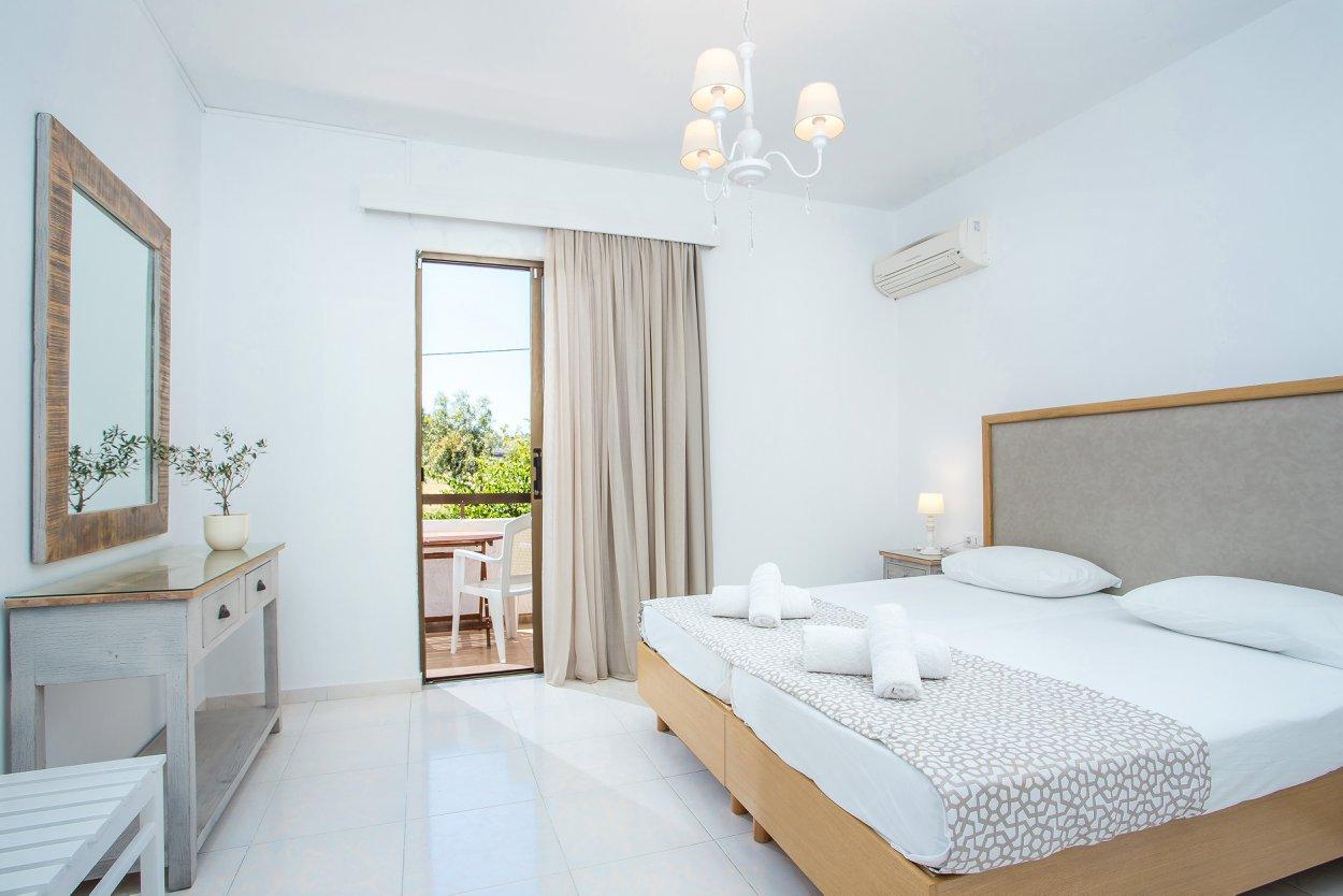 Szobák: Minden  stúdió  (2-3 fős ) és két hálószobás apartman  , praktikusan berendezett, melynek felszereltségéhez légkondicionáló ( a helyszínen fizetendő felár ellenében ), konyhasarok a legszükségesebb eszközökkel felszerelve, fürdőszoba, balkon vagy terasz tartozik. A két ágyas szobák is hasonló felszereltséggel rendelkeznek a konyhasarok kivételével.